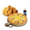 고구마에 색다른 스트링치즈 토핑이 만나 단맛이 일품인 피자와 25년 전통 비법으로 더 바삭하고, 더 촉촉한 후라이드 치킨의 조합