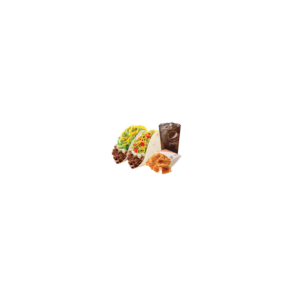 소프트 클래식 타코(스테이크) + 소프트 수프림 타코(스테이크) + 나쵸칩스/미니샐러드 + 탄산음료