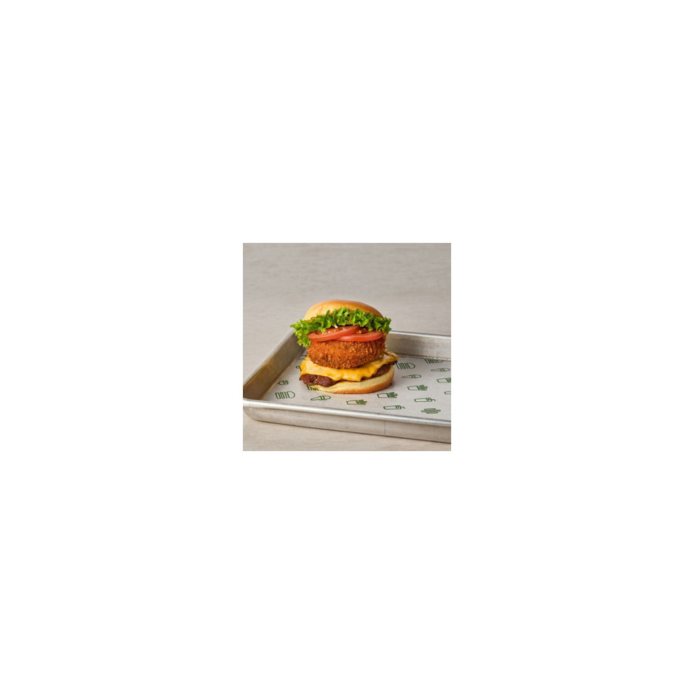 포토벨로 버섯 패티, 비프 패티와 함께 토마토, 양상추, 쉑소스가 토핑된 치즈버거