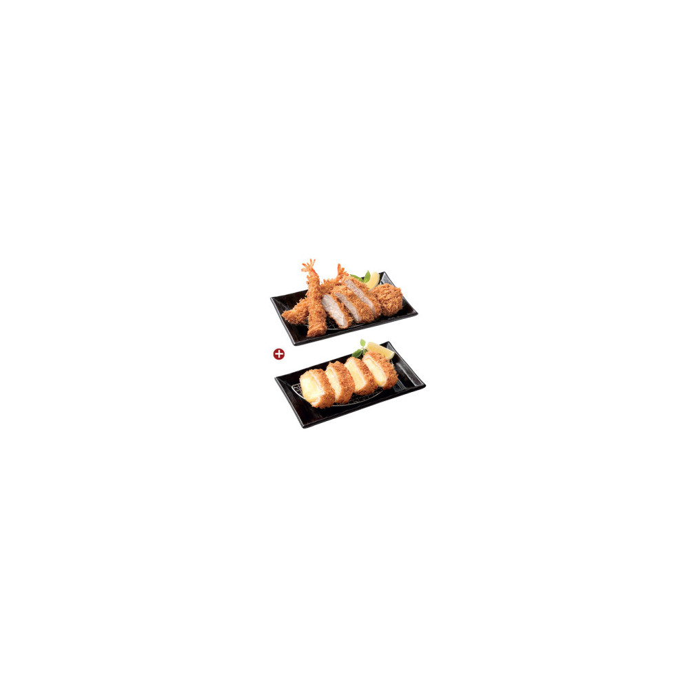 사보텐의 로스, 히레, 통새우 카츠를 한 번에 만나는 베스트셀러 메뉴와 모짜렐라를 듬뿍 넣어 고소한 풍미가 가득한 프리미엄 치즈 카츠로 구성된 사보텐 더블 카츠 세트입니다.