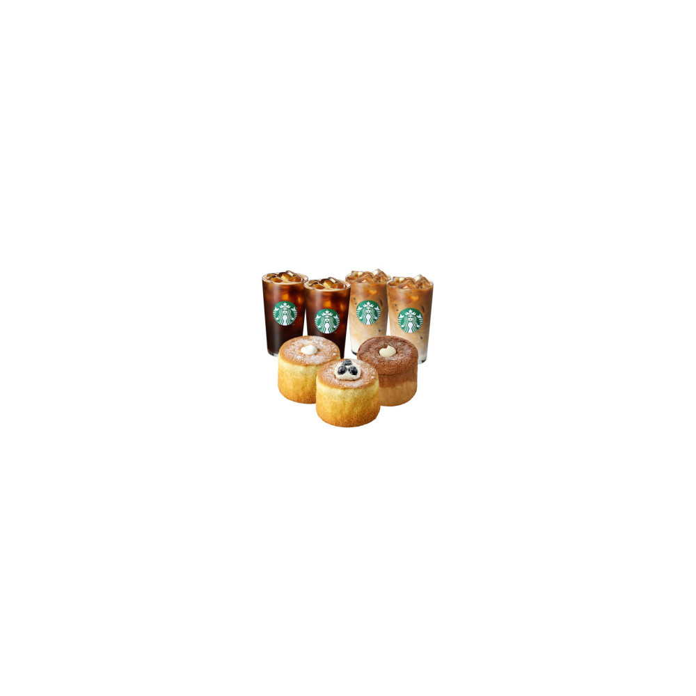 아이스 카페 아메리카노 T (4,700원) 2잔 + 아이스 카페 라떼 T 2잔 (5,200원) + 부드러운 생크림 카스텔라 (4,500원) + 초코 품은 부생카(5,500원) + 블루베리 품은 부생카 (5,900원)